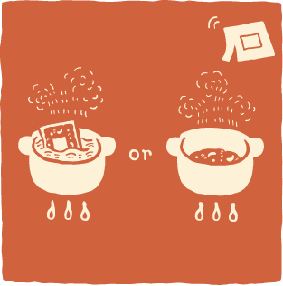 ❷パウチのまま湯煎するか、鍋にあけて温める